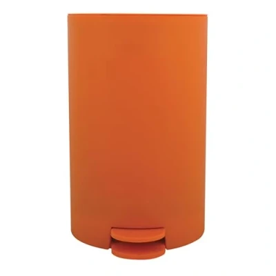 Relaxed waste management: convenient opening and easy cleaning thanks to its smooth pedal and removable black plastic inner bucket GREAT FOR BATHROOM, OFFICE OR KITCHEN - Modern, sleek design refreshes any space with a wide range of vibrant colors Integrate modernity into your bathroom: made of matte polypropylene, its round shape ensures stability and allows the use of standard bags Compatible with other MSV bathroom accessories: soap dispenser, toilet brush, soap dish, tumbler, cosmetic box Capacity: 3 litres. Dimensions: 14.5 x 15.5 x 27 cm. Material: polypropylene. Colour: orange