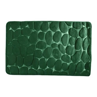 MSV Pebble Stone Bath Mat Washable Quick Drying Non-Slip 50 x 80 cm - Dark Green