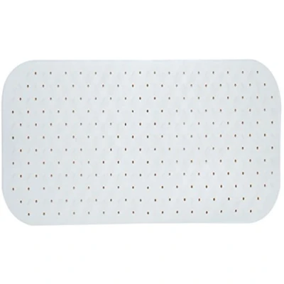Non-slip shower or bath mat made of natural rubber - safety for children, adults and animals when entering, leaving and standing in the shower/bath Stays in place - With suction cups on the bottom for a secure hold Non-slip surface on the non-slip mat, easy to clean, washable at 60 °C Colour: white - 36 x 65 cm The bath mat is made of high-quality anti-mould rubber