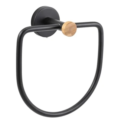 MSV Round Wall Towel Ring in Steel & Bamboo Iana Matt Black, Weight: 0.7936641432 Pounds, Manufacturer: MSV