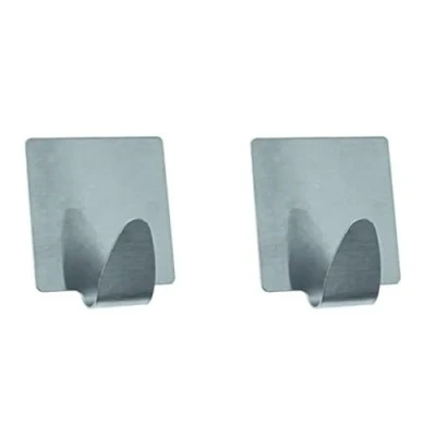 MSV Set of 2 Adhesive Wall Hooks Stainless Steel