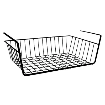 AmazonSimply attach the storage basket to a shelf Can also be used in the wardrobe for storing small items or socks Metal Storage Basket for Kitchen Cupboard Wardrobe Shelves Base Shelf For shelf thickness approx. 4 cm, can hold up to approx. 5 kg