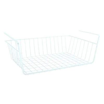 Storage basket easy to hang on a shelf Can also be used in the wardrobe for storing small items or socks Hanging Basket Metal Storage Basket for Kitchen Cabinets Wardrobes Shelves Undermount Cabinet Undermount Shelf Dimensions: 38.5 x 25.5 x 14 cm, colour: white For shelf thickness approx. 4 cm, can hold up to approx. 5 kg
