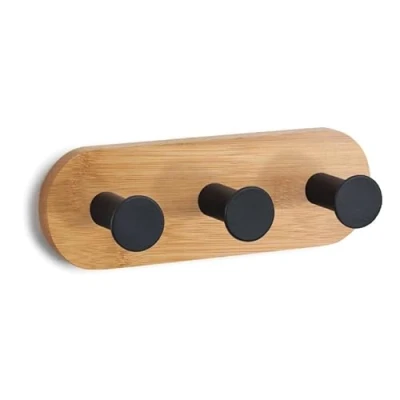 MSV YONO Coat Rack with 3 Hooks No Drilling Black & Bamboo