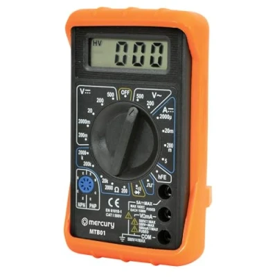 COMPLETE TESTING KIT - Digital multimeter with 19 testing ranges and 7 functions, supplied ready to use with shrouded testing probes, PVC shockproof protective jacket, and PP3 9V battery included VERSATILE MEASUREMENT CAPABILITIES - Tests AC voltage 200-500V, DC voltage 200mV-500V, DC current 2000µA-5A, and resistance 200 Ohms-2000K Ohms for comprehensive electrical diagnostics ADVANCED TESTING FUNCTIONS - Features continuity test function, transistor test function, and square wave testing signal output for professional and DIY electronics work QUALITY CONSTRUCTION - 570mm test lead length provides good reach, compact 126 x 70 x 29mm size, complies with EN61010-1:2010 safety standard for reliable performance IMMEDIATE USE - Arrives complete with all accessories needed to start testing straight away, protective case keeps unit and probes safe during storage and transport, Weight: 0.5291094288 pounds, Manufacturer: kenable