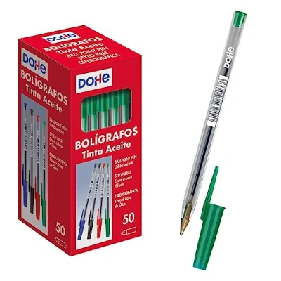 Box of 50 Green Pens Oil-based ink: allows for smooth, consistent writing and prevents smudging. 1mm metal ball tip and 0.4mm line for thicker, more visible strokes Transparent body allows you to see the amount of ink available so you can change pens before ink runs out. Vented hood helps keep ink always fresh and in perfect condition.