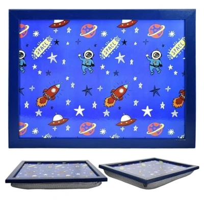 MTS Boys Girls Large Wooden Soft Padded Cushioned Bean Bag Lap Dinner Laptop Food TV Tray for Kids (Space)