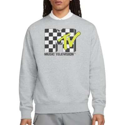 MTV Checker Board Logo Crew Sweatshirt, Athletic Heather, Medium
