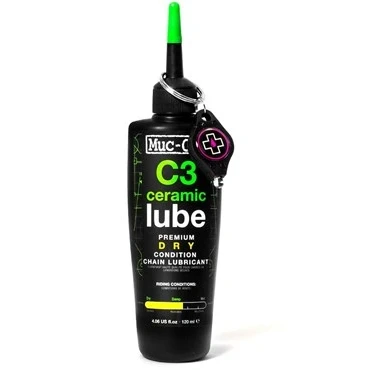 C3 Dry Ceramic Chain Lube raises the bar when it comes to giving the ultimate lubrication. It gives total corrosion protection and unparalleled performance in dry, dusty and damp conditions. With added nano ceramic particles and synthetic polymers, C3 Dry Ceramic Chain Lube maximises your power output by reducing metal to metal contact to a ground breaking, low level and gives up to 10 times the performance of conventional chain oils and lubes. The Muc-Off R&D team definitely didn’t cut corners when they brought the future of bike lubes to the masses.In fact, our team made sure the C3 Dry Ceramic Lube is safe by creating a biodegradable, petroleum free formula so you don’t have to worry about yourself, your bike or the planet. The new C3 Dry Ceramic Lube is available in 5ml, 50ml, 120ml and 1ltr sizes so whether you’re in the workshop, on the road or hitting the trails, we’ve got you covered.Key Features:Ideal for Road Cycling, Cyclocross & MTBProvides the ultimate performance in damp, dry & dusty conditionsPetroleum free formula for eco protectionCeramic coating for increased drive chain protectionSynthetic polymers for long distance performanceIncredible durabilityPipette system for easy applicationIncludes UV torch to check for 100% coverageDirections for use:Fully de-grease drive chain thoroughly before lube application.Ensure drive chain area is dry.Shake bottle vigorously and apply a moderate amount of C3 Dry Lube to the inside chain link, whilst spinning pedals in a reverse motion.Ideally apply 3-4 hours before your ride.Check to make sure the lube coverage is even using the supplied UV Torch!Wipe excess lube carefully