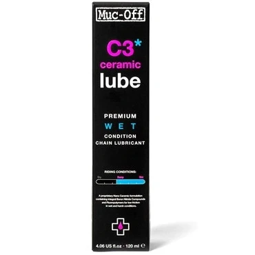 The secret to the C3 Ceramic Wet Chain Lube is its unique ceramic coating that gives incredible durability and long distance performance on all bicycle chains. The innovative formulation in our chain oil also uses Boron Nitride and Fluoro Polymers to ensure ultra low friction for ultimate drive chain efficiency, high performance and durability. The waterproof qualities of Muc-Off C3 Ceramic Wet Chain Lube also mean that your drive chain will excel in the harshest of riding conditions.Looking for long chain oil service intervals and precision gear changes with super low friction reduction? Look no further. C3 Ceramic Wet Lube is packaged in an ergonomic bottle complete with pipette system for easy use and application. It’s also 95% biodegradable and is ideal for Road, Cyclocross and MTB.Key Features:Ideal chain lubricant for Road Cycling, Cyclocross & MTBExcels in wet, muddy conditionsContains Fluoro Polymers & Boron Nitrides for efficiencyCreates Ceramic coating for chain protectionUltra long distance performanceIncredible durabilityPippette system for accurate, easy applicationDirections for use:Step 1 - Clean drive chain thoroughly before lube application.Step 2 - Ensure drive chain area is dry.Step 3 - Apply a moderate amount of C3 Ceramic Wet Chain lube to the inside chain link while spinning pedals in a reverse motion.Step 4 - Wipe away any excess chain lube.