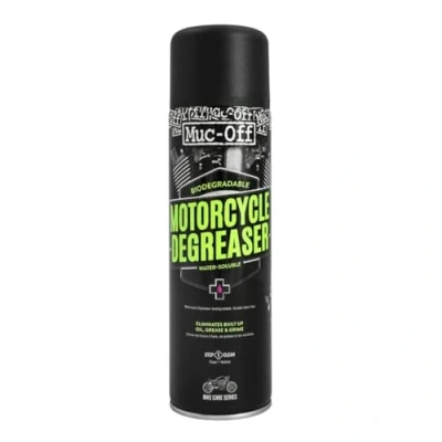 FAST AND EFFECTIVE: Our advanced grease cutting formula effectively rips through dirt and grime to safely eliminate even the most stubborn of drivetrain contaminants, including chain oil and wax residue BIODEGRADABLE: Our water-soluble motorcycle degreaser is formulated to be fully biodegradable; We've designed a badass cleaning spray that is tough on dirt but gentle on the planet. The Motorcycle Degreaser offers the in clear-conscience cleaning power EASY TO USE: Designed to perform, our motorcycle degreaser is super easy to use. Shake the can, spray it generously all over the drive chain and leave for a minute. Agitate any stubborn grime with a brush as required and rinse away for a sparkling finish SAFE ON COMPONENTS: Our degreaser is suitable for use when cleaning chains, mechs and individual components. If it's greasy, our powerful cleaner will have it sparkling again in no time SUITABLE FOR ALL MOTORBIKES: No motorcycle cleaning kits are fully equipped without a can of Muc-Off; Our engine degreaser spray will make light work of grime on any motorbikes Whether you prefer to hit the asphalt or go rogue off-road, your post-ride clean-up just got easier