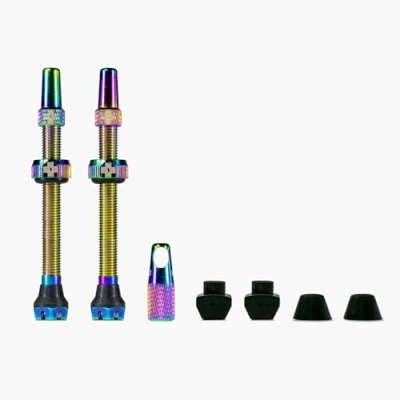 Available in 10 eye-popping colours, you can add some custom bling to your ride and be sure to provide the perfect seal for your wheels. Take a closer look at what makes the V2 valves better than ever. Precision machined from aircraft-grade 7075 aluminiumTyre insert air flow system that allows the tyres to be inflated easierIncludes Valve Core Removal Tool (integrated into spare alloy cap) Key Features: 7075 Aluminium machined stem 7075 Aluminium machined cap 4mm machined Allen Key slot for easy installation / removal Includes Valve Core Removal Tool (integrated into spare alloy cap) Supplied with various rubber bases to optimise fit with multiple rim types Assortment of 10 eye-popping colours Available in 3 different sizes - 44mm, 60mm or 80mm Suitable for Presta Valves only What's Included? 2x 7075 Aluminium Presta valves2x Valve caps2x Locking nuts1x Valve core removal tool (doubles as a spare valve cap)3 x Pairs of rubber bases for size choice