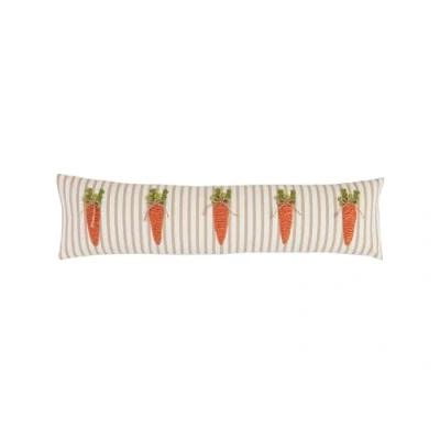 The Mud Pie Long Carrot Easter Pillow Is A Delightful Addition To Your Seasonal Décor, Perfect For Adding A Touch Of Festive Charm To Your Home Crafted From High-Quality Cotton, This Elongated Pillow Showcases An Intricately Embroidered Appliqué Of A Vibrant Carrot, Complete With Twine Detailing That Adds A Rustic, Handcrafted Feel The Pillow'S Canvas Backing Ensures Durability And Features A Convenient Zipper Closure For Easy Removal And Cleaning Measuring 7 1/2 Inches By 30 Inches, This Pillow Is Ideal For Accenting Sofas, Benches, Or Beds, Bringing A Cheerful And Whimsical Element To Your Easter Celebrations