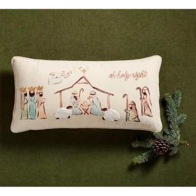 Mud Pie Nativity Pillow, 12" x 24", Cream