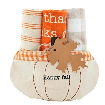 Mud Pie Pumpkin Towel Set, Happy Fall, 21" x 14"