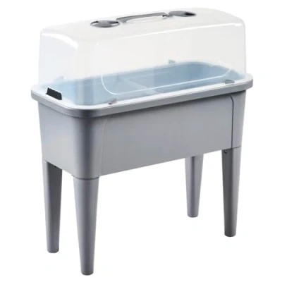 Muddy Hands Grey Plastic Large Plant Pot with Lid Outdoor Garden Tall Planter Grow Table Stand Raised Bed