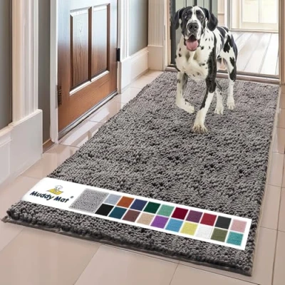 [ MUD & DIRT-FREE FLOORS ] Keep your entryway clean and clutter-free with this microfiber entrance rug from Muddy Mat - the ideal welcome trapper mat essential to wipe any messy paw prints and sludge from boots and shoes. Gone are the days of getting on your knees to wipe and rub mud from dog's plush paws with a pile of dirty rugs. [ SOFT and COZY TO STEP ON ] Experience the height of comfort as your feet touch our plush chenille mat. Great to use not only for your bathroom and shower but also for your kitchen, patio, living room, and bedroom. You may also use this as a pet mat for your furry dogs and cats to feel warmth and high comfort. [ ULTRA MOISTURE ABSORBENT ] Designed with a thick layer of plush 1-inch chenille that soaks up to 5X its weight for maximum water absorption ideal for trapping liquid from shower floors and wet spills from pets. [ SUPERIOR GRIP ANTI-SLIP ] Muddy Mat provides maximum traction on any surface - strong hold on both tile and hardwood floors for extra safety. Its textured TPE (Thermoplastic Elastomer) backing gives an anti-skid grip design. [ BUILT TO LAST ] Crafted with meticulous double stitching and sturdy materials for increased durability. Easy Cleaning and Care Instructions: For deep cleaning, machine wash with cold in the Gentle/Delicates Cycle and dry using low heat on the Gentle/Delicates Cycle