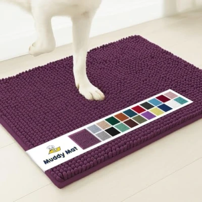 [ MUD & DIRT-FREE FLOORS ] Keep your entryway clean and clutter-free with this microfiber entrance rug from Muddy Mat - the ideal welcome trapper mat essential to wipe any messy paw prints and sludge from boots and shoes. Gone are the days of getting on your knees to wipe and rub mud from dog's plush paws with a pile of dirty rugs. [ SOFT and COZY TO STEP ON ] Experience the height of comfort as your feet touch our plush chenille mat. Great to use not only for your bathroom and shower but also for your kitchen, patio, living room, and bedroom. You may also use this as a pet mat for your furry dogs and cats to feel warmth and high comfort. [ ULTRA MOISTURE ABSORBENT ] Designed with a thick layer of plush 1-inch chenille that soaks up to 5X its weight for maximum water absorption ideal for trapping liquid from shower floors and wet spills from pets. [ SUPERIOR GRIP ANTI-SLIP ] Muddy Mat provides maximum traction on any surface - strong hold on both tile and hardwood floors for extra safety. Its textured TPE (Thermoplastic Elastomer) backing gives an anti-skid grip design. [ BUILT TO LAST ] Crafted with meticulous double stitching and sturdy materials for increased durability. Easy Cleaning and Care Instructions: For deep cleaning, machine wash with cold in the Gentle/Delicates Cycle and dry using low heat on the Gentle/Delicates Cycle