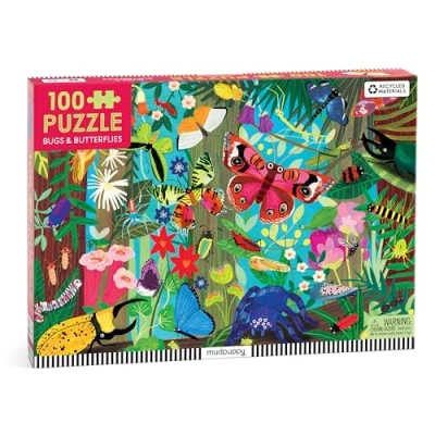 100 PIECE PUZZLE – Dive into the fascinating world of nature with Mudpuppy's Bugs & Butterflies 100-Piece Puzzle! Explore a vibrant and colorful scene filled with beautiful butterflies, buzzing bees, and other enchanting insects fluttering among blooming flowers. The large, easy-to-handle pieces are designed for children ages 5 and up, making it a perfect way to spark curiosity about the wonders of the natural world as you piece together this delightful garden adventure. PERFECT FOR GIFTING – With sturdy pieces and a stunning design, the Bugs & Butterflies puzzle is a delightful and durable gift that will bring joy to young puzzlers. Whether for a birthday, holiday, or a rainy day activity, this puzzle will captivate young minds with its engaging artwork and fun challenge. It's a wonderful gift for children who are fascinated by the beauty of nature and the creatures that inhabit it, offering hours of entertainment and learning. EDUCATIONAL – As children assemble the puzzle, they’ll discover the intricate beauty of bugs, butterflies, and flowers, sparking their interest in the environment. Perfect for children ages 5 and up, this puzzle promotes cognitive development, spatial reasoning, and problem-solving skills. It also encourages observation, attention to detail, and an appreciation for the natural world, making it a great tool for educational play at home or in the classroom. FAMILY BONDING – Bugs & Butterflies offers a wonderful opportunity for families to come together and work as a team. Whether solving the puzzle on their own or with loved ones, kids will enjoy the collaborative experience. It’s a perfect screen-free activity that encourages meaningful conversations, communication, and bonding time, making it an ideal way for parents and children to share quality moments while learning together. MUDPUPPY – For over 25 years, Mudpuppy has been creating high-quality, non-digital puzzles, games, and toys that encourage creativity and imaginative play. Committed to promoting eco-friendly practices, Mudpuppy designs products that help children unplug, develop skills, and enjoy fun experiences. All Mudpuppy products meet CPSIA, ASTM, and CE safety regulations, and are printed with non-toxic inks on recycled materials., Manufacturer: Mudpuppy