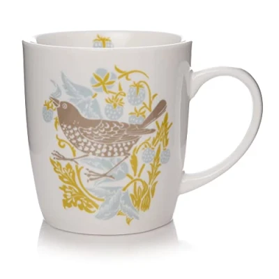 Officially licensed William Morris product by Shruti Designs Features William Morris' strawberry thief design in ochre yellow, blue and warm grey As well as the words, " The true secret of happiness lies in taking a genuine interest in all the details of daily life " Dimensions - 8.5 (h) x 9 (w) x 8.5 (d) cm Also includes a lovely fruit detail on the inside rim