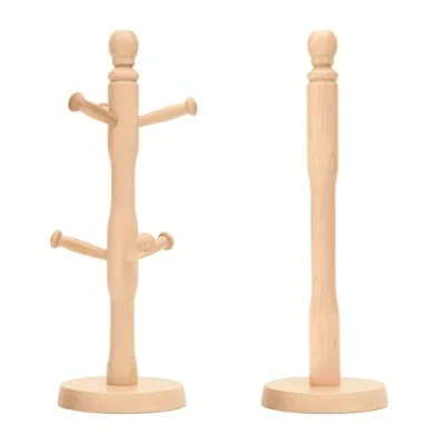 Style: Both the kitchen towel roll and Mug Tree holder traditional-style, beautiful combination is made of Hevea wood. The Combination will improve the beauty of your kitchen. HANGING CAPACITY: This wooden mug tree holder can hang up to 6 mugs of different sizes; It’s great for families or anyone who loves to keep their favorite mugs within reach. Kitchen Towel Holder works as a versatile perfect for holding kitchen towel rolls securely in place. ONE-HAND OPERATION: Tear off paper towels smoothly and efficiently with one hand; It assists in even pulling without wasting excess paper, saving time and resources; This functional feature is especially useful during food prep or quick clean-ups. ANTI-SLIP BASE: The stand holder has a strong, anti-slip base keeps the wooden paper towel and Tree holder stable on any surface, it steady on your countertop. It prevents slipping or tipping when pulling paper towels, providing a secure and hassle-free experience EASY CLEAN: This Mug Tree and Kitchen Roll Holder Set can be easily cleaned with a damp cloth to maintain the elegant finish
