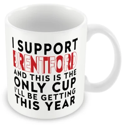 MUGGZ Funny Brentford Football Mug I Support and This is The Only Cup I’ll Be Getting Year Joke Gift for Fans, Dad, Friends 11oz Ceramic Dishwasher Safe