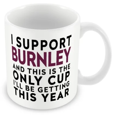 MUGGZ Funny Burnley Football Mug I Support and This is The Only Cup I’ll Be Getting Year Joke Gift for Fans 11oz Ceramic Dishwasher Safe