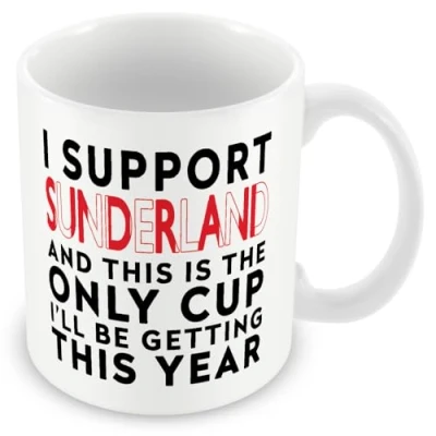MUGGZ Funny Sunderland Football Mug I Support and This is The Only Cup I’ll Be Getting Year Joke Gift 11oz Ceramic Dishwasher Safe