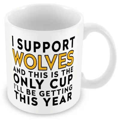 MUGGZ Funny Wolverhampton Football Mug I Support and This is The Only Cup I’ll Be Getting Year Joke Gift 11oz Ceramic Dishwasher Safe