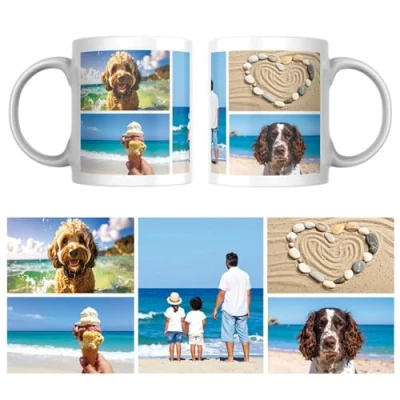 MUGGZ Personalised Ceramic Mug (11oz) with Photo Personalise a 5 Photo/Logo Collage Novelty Custom Gift for Family, Birthday, Anniversary, Mum, Dad, Corporate Business