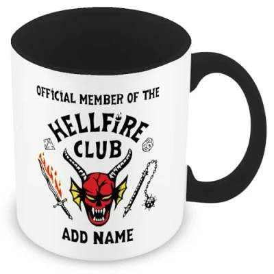 MUGGZ Personalised Stranger Things Mug Hellfire Club Logo Black Handle Custom Fan Gift Cup