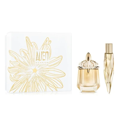 Embark on a Christmas fantasy journey. Let yourself be guided by the Mugler Galaxy with the Alien Goddess gift set. The new Alien Goddess eau de parfum scent will unearth every woman's inner light and life force. It's the sun's radiance, an incandescent and generous embrace as a spiritual offering, a sacred promise of femininity. This gift set contains a 30ml bottle of the fragrance and a 10ml purse spray.