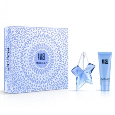 The set includes: 50ml EDP + 100ml body lotion. Angel, the first fragrance by Thierry Mugler, is a sensual, oriental fragrance for women. Angel seduces with angelic notes, found deep in the heart of our memories, and with emotional and passionate accords as well. Its uniqueness is what makes it so popular but it is also a reason for some people not to tolerate it. The noses behind the scent are Olivier Cresp and Yves de Chirin. Top notes: Melon, Coconut, Mandarin, Cinnamon, Jasmine, Bergamot, Cotton Candy Heart notes: Honey, Apricot, Blackberry, Plum, Orchid, Peach, Jasmine, Lily-of-the-valley, Red berries, Rose Base notes: Tonka, Amber, Patchouli, Musk, Vanilla, Dark Chocolate, Caramel Launched in 1992.