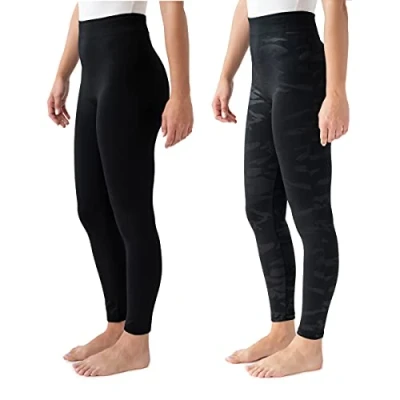 MUK LUKS Women's 2 Pack of Leggings Hosiery, Black/Black, Medium/Large (Pack 2)