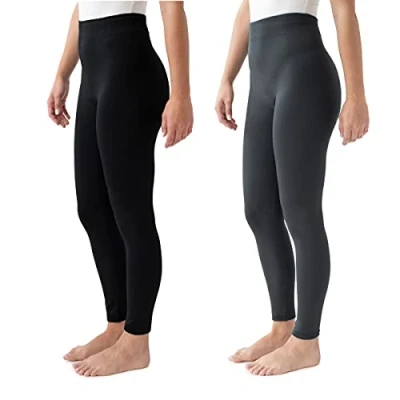MUK LUKS Women's 2 Pack of Leggings Hosiery, Charcoal/Black, Medium/Large (Pack 2)
