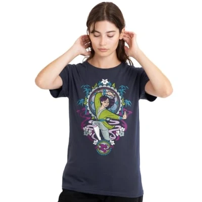 Mulan Women's Stained Glass Ladies T Shirt, Deep Navy, S