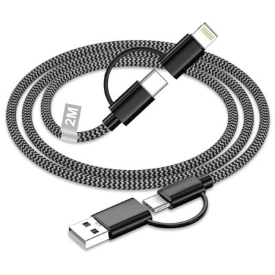 Multi Charger Cable 2M, 4 in 1 Charging Braided Multiple Lead 60W Fast Charge USB A/USB C to Lightning Cable, for iPhone, iPad, Samsung, Android, Xiaomi