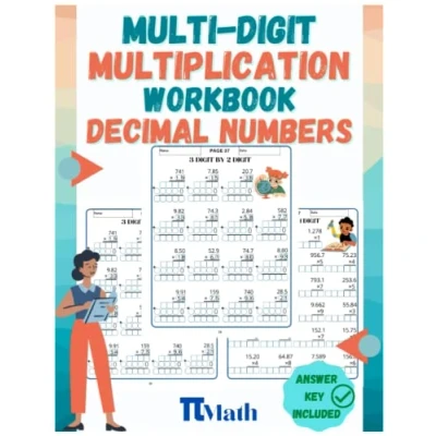 Multi digit Multiplication Decimal Numbers Workbook (with Grid Line Guides): Multiply 2, 3 and Big with Answer Key, Grades 3rd, 4th, 5th