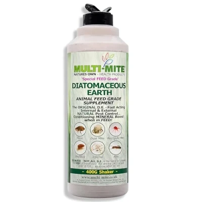 Multi Mite® 400G Shaker Feed Grade DIATOMACEOUS Earth DE Red Mite, Fleas and All Animal Lice Control Powder