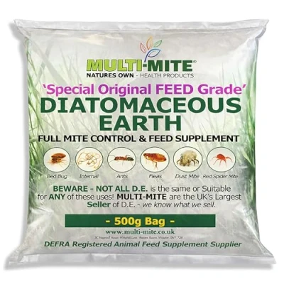 Multi Mite 500G DIATOMACEOUS EARTH Feed Supplement DE Powder 100% Natural Insect Treatment Red Fleas and All Animal Lice Control (500g)