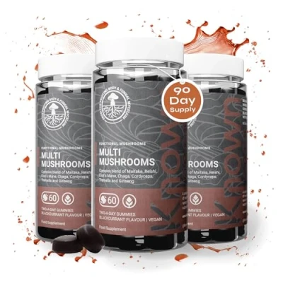 Multi Mushroom Complex Gummies 2000mg Lions Mane, Reishi, Maitake, Chaga, Cordyceps, Tremella, Blackcurrant Flavoured with L Theanine, Ginseng, Pantothenic Acid, Iodine Vegan (3)
