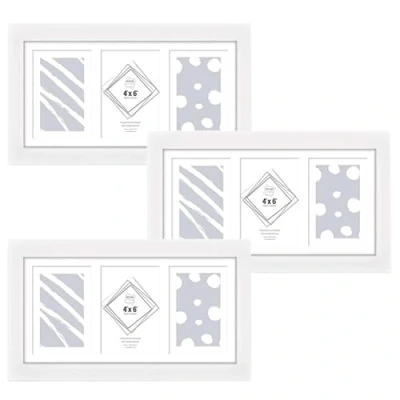 Multi Photo Picture Frames White Multiple Photos 3 Aperture 4 x 6 Frame to Fit Solid Wood 10 15cm REAL GLASS Three Photo's Inch (Set of 3)