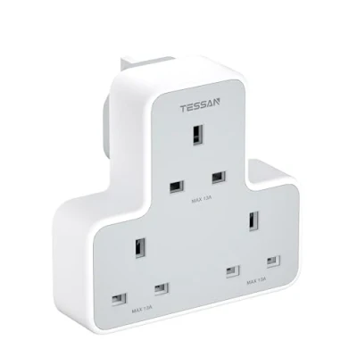 3 in 1 Adapter Plug UK: This multiple adaptors plug UK can turn 1 socket into 3 AC outlets, charging up to 3 devices at a time without blocking; You can use it in any indoor place such as bedroom, hotel, office and college dorm room Safe Extension Plug: The sturdy design keeps our plug from wobbling when plugged into wall sockets. Built in 13A fuse, the multi plug extension provides safety for your devices Stable Design : The socket adapter has an adjustable knob at the back to stabilize the wall plug; You can screw it out when you need to use the 3 way adapter UK, making sure the plug extension is suitable for your skirting board below plug Widely Space Wall Plug extender: With the dimension of 10.9x11.5x6.3cm, the triple plug is easy to store; Compact design Plug Adapter can fit 3 big plugs together without blocking each other, cleaning various messy cords, taking up little space at your home; Makes it easier to use various equipment in any place with limited sockets Compact Size for Travel: With only 257g lightweight and protable design adaptor can easily fit your suitcase, backpack and handbag, ideal for your travel and business trip; No surge protection, makes it a must have cruise ship accessories, Weight: 0.5291094288 pounds, Manufacturer: Zhuhai Tessan Power Technology Co., Ltd.