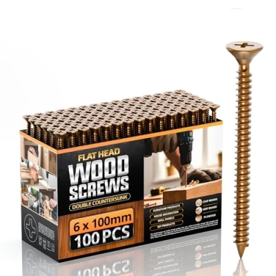 Multi Purpose Wood Screws, 6x100mm 100pcs, Zinc Galvanized Single Thread Screws Kit, Self Tapping Decking Yellow Passivated Screw M3,M4 Assortment Ideal for Diy,Furniture Fix, and Repairs