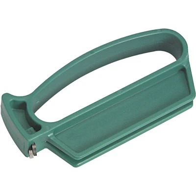 General description This is a versatile garden tool sharpener designed to restore the cutting edges of various gardening tools and household knives. It effectively sharpens pruning shears, loppers, grass hooks, weed knives, and scythes. It can also be used to sharpen household and pocket knives by simply drawing the blade across the diamond-honed tungsten carbide heads. The sharpener quickly restores a sharp edge in minutes. Technical specifications Weight: 0.064 kg (2.26 oz) Dimensions: 0.26 × 0.12 × 0.03 m Material: Tungsten Carbide Part Number: MS1501E / ATT1501 Compatibility and accessories Suitable for straight-edged pruning tools Grass hooks Weed knives Household knives Installation Place the guard over the cutting edge of the tool or knife Draw the sharpener across the blade to restore the edge Usage Use the tungsten carbide heads to quickly sharpen blades by drawing the tool across the edge Repeat as necessary to achieve a sharp edge Other information Not suitable for