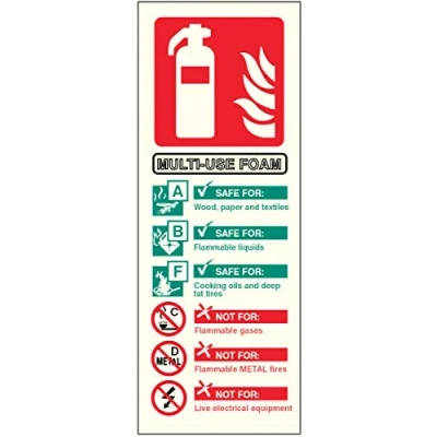 Multi use foam extinguisher identification Photoluminescent Rigid Sign
