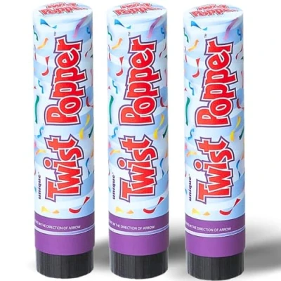 CELEBRATE IN STYLE: Make your special events memorable with our confetti party twist poppers! The perfect fun celebration essentials for birthdays, weddings, and any other significant occasion, adding a pop of color and excitement whenever you need it. EASY TO USE PARTY TWIST POPPERS: Simply twist and pop to unleash multicolor confetti that's sure to delight your guests. No need for batteries or complicated setups – just grab, twist, and enjoy the festive surprise. VIBRANT MULTICOLOR CONFETTI: Our party twist poppers are filled with a dazzling mix of colorful biodegradable confetti, ensuring a stunning visual effect for your celebration while being eco-friendly. Watch as it fills the air and covers your venue in a beautiful burst of colors. COMPACT SIZE, BIG IMPACT: Each of our 10cm long party twist poppers may be small, but they pack a powerful punch! The compact size makes them easy to handle and transport, ensuring you have a hassle-free experience as you add a burst of excitement to your event. THREE-COUNT PACK: This set contains three party twist poppers, ensuring you have enough confetti power to make your special moments magical. Share the joy with your friends and loved ones by distributing them to guests for a synchronized celebration., Manufacturer: Unique