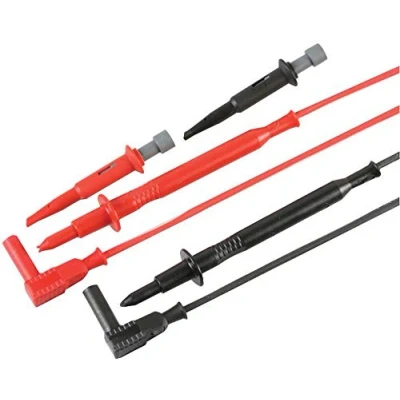 Robust & Reliable – High-quality test lead set with flexible silicone insulation, ideal for precision testing and diagnostics. Versatile Right-Angle Design – 4mm shrouded plugs with right-angle connectors ensure a secure, space-saving connection. Complete Test Kit – Includes 1.5m black and red leads, matching probe bodies, and sprung hook adaptors for versatile applications. High Voltage Safety – Rated to 1000V CAT III & 36A for the probe and lead, and 500V CAT I 5A for the sprung hook adaptor. Ideal for Professionals – Trusted by engineers, electricians, and service technicians for lab, field, and workshop use.