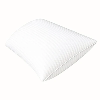 Multiflux Set of 1 Stripe Hotel Quality Bounce Back Bed Pillow Side Sleeper Cotton Blend With Virgin HollowFibre Firm Support Anti Allergy Machine Washable 48x74cm White
