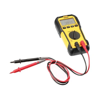 General description The Stanley Intelli Tools FatMax® Smart Digital Multimeter is a highly reliable device designed for accurate electrical measurements. Its compact, handheld design makes it suitable for both professional and DIY electrical work. The multimeter features an easy-to-read 3.5-inch LCD display with a dual display option, allowing you to view two values simultaneously. It includes all necessary functions to measure DC and AC voltage, DC current, resistance, battery voltage, diodes, and in-circuit continuity tests. The Smart Function automatically detects the correct measurement, and a 'Hold' function allows you to retain a value for a few seconds. Technical specifications Voltage: AC/DC 600V Resistance: 10M ohm Continuity: